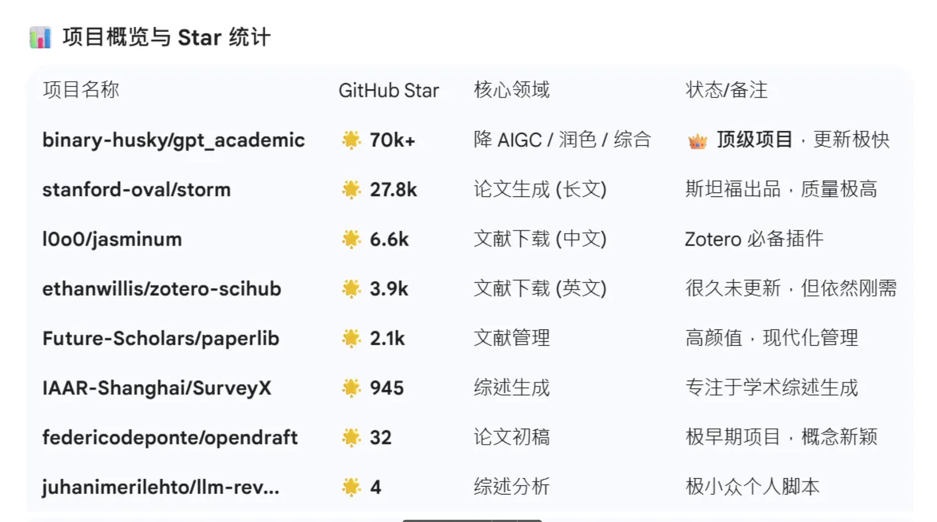 - 功能:一个基于 Python 的 AI 论文生成引擎,宣称可以在 10-20 分钟内生成 2 万字的论文初稿。